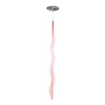 The Pogo Pendant brings a clean simple form to a variety of interior spaces. A long spiral nylon mesh shade surrounds the thin LED light strip which is hung from a thin cable, making this piece seem to float in the air. Available in White Mesh, Orange Mesh, Beige Mesh, Green Mesh, or Red Mesh with a Brushed Nickel finish. Canopy: 6 inch diameter. Made in the USA. UL listed.
