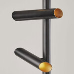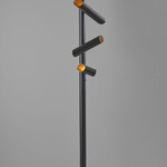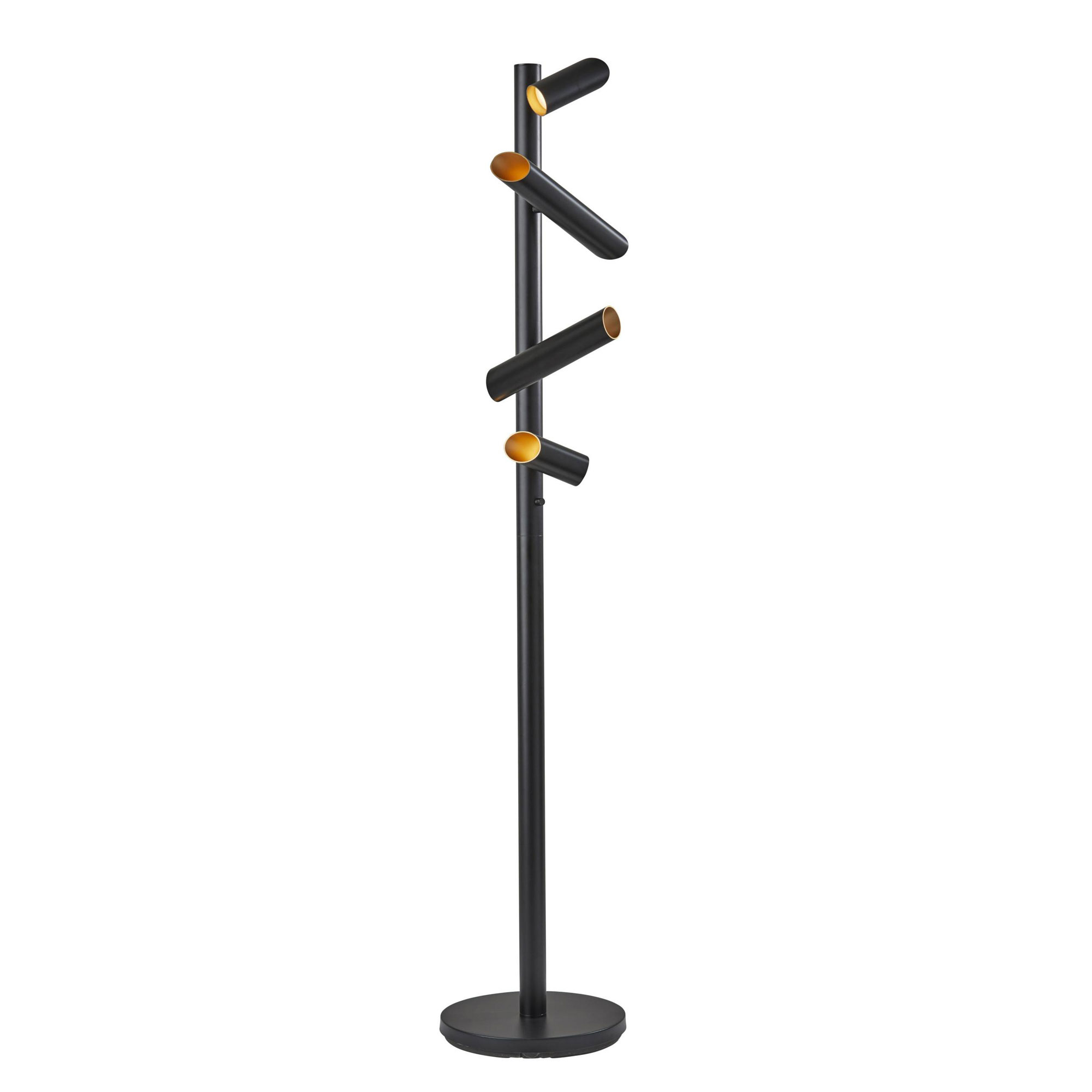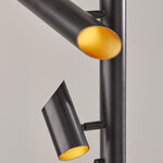 The Tyler Floor Lamp features a Black finish and cylinder shades with a Gold painted interior. Includes a 14 inch diameter base and a 2 inch thick pole. Available with 2 short shades (2.375 inch diameter X 5.75 inch long) and 2 long shades (2.375 inch diameter X 11.5 inch long). Includes a dimmer switch. UL listed.